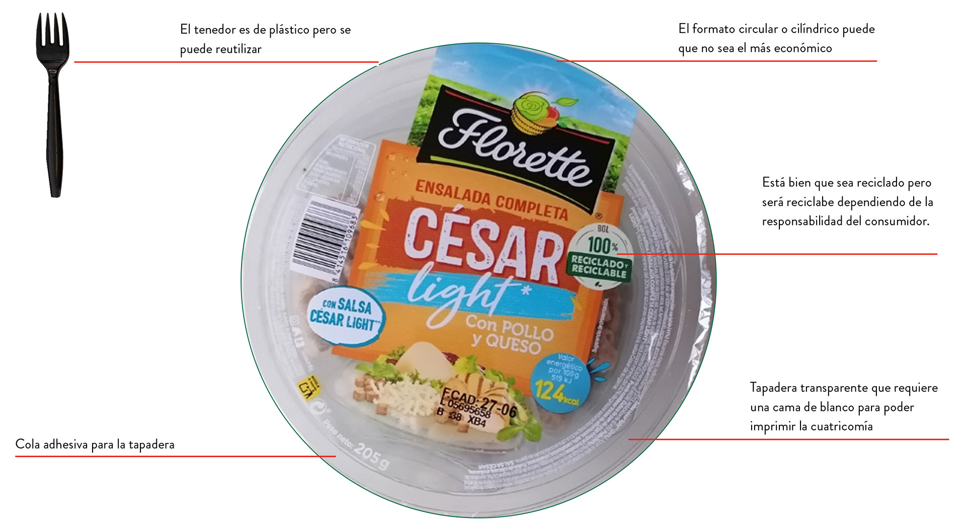 consumidor disfrute su ensalada directamente del envase gracias a la base plana.