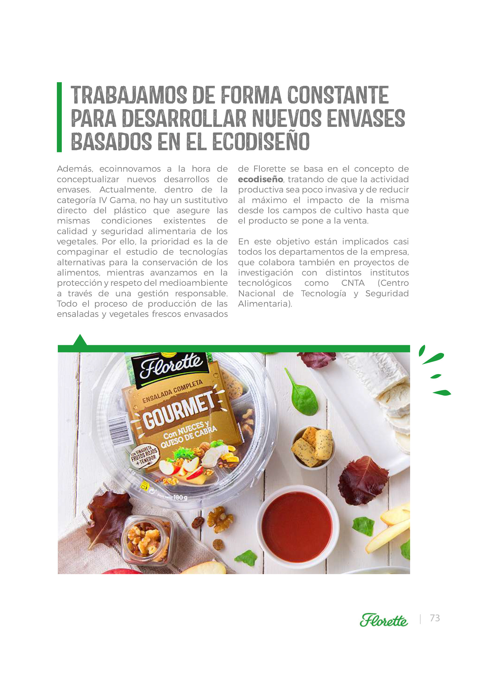 Según dice Florette en su Memoria de sostenibilidad, “no hay un sustitutivo directo del plástico que asegure las mismas condiciones existentes de calidad y seguridad alimentaria de los vegetales”, por lo que a priori no se deberían explorar otras alternativas en cuanto a materiales.