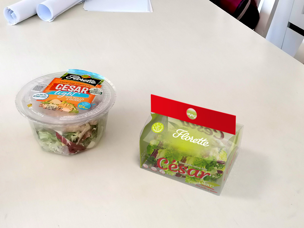 El reto consistía en diseñar una propuesta de packcaging más sostenible que la que actualmente utiliza Florette para envasar sus ensaladas. Se estudió el contenido, los modos de conservación de este tipo de alimentos, los materiales y la logística para optimizar cada uno de los pasos hasta llegar el consumidor.